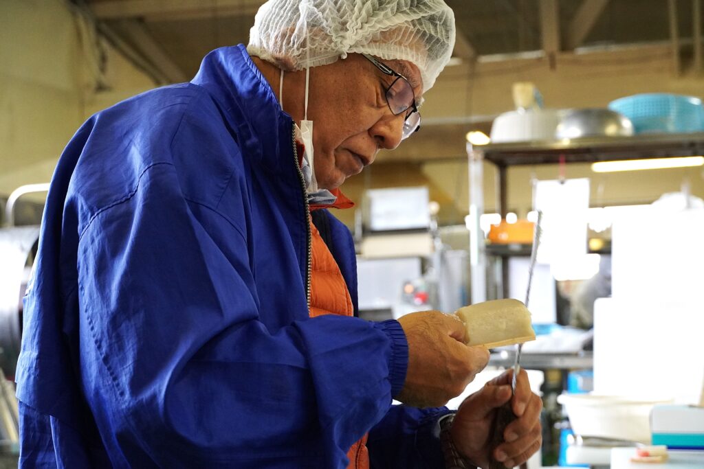 別所さんは、選り好みはせず、季節に応じて多種の魚種を買い取る努力をしている。近海魚を中心にしながら、時には外国船の漁獲してすぐに船上加工した新鮮な”とれたてすり身”も使用している。前浜でたくさんの魚が揚がった時代とは異なり、温暖化の影響などで前浜での対応が難しい現状においても、素材への妥協は一切ない。